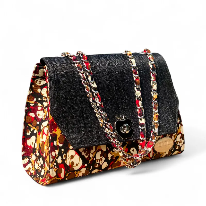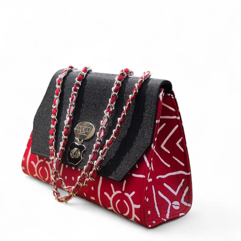 Structured African Print Shoulder Bag with Black Flap & Chain Strap (Ann Classic)