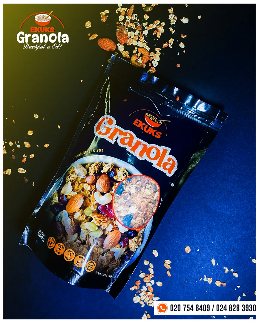 Indulge in the delightful crunch of Ekuks Granola, expertly crafted with wholesome ingredients to kick-start your day.